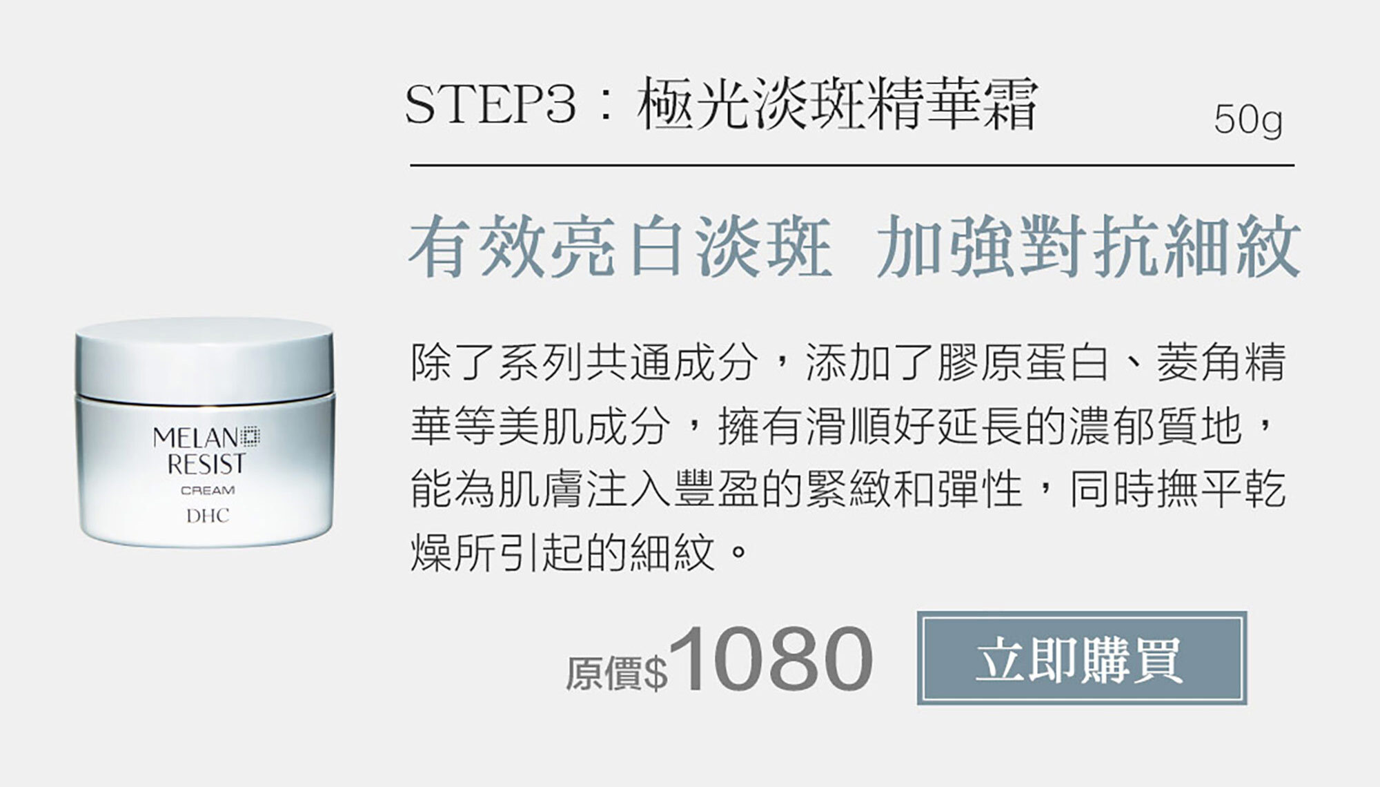 添加亮白有效成分、直截IB精華,以及膠原蛋白等有助於提升緊緻、彈力的成分。能撫平乾燥所引起的細紋、擁有年輕美肌。