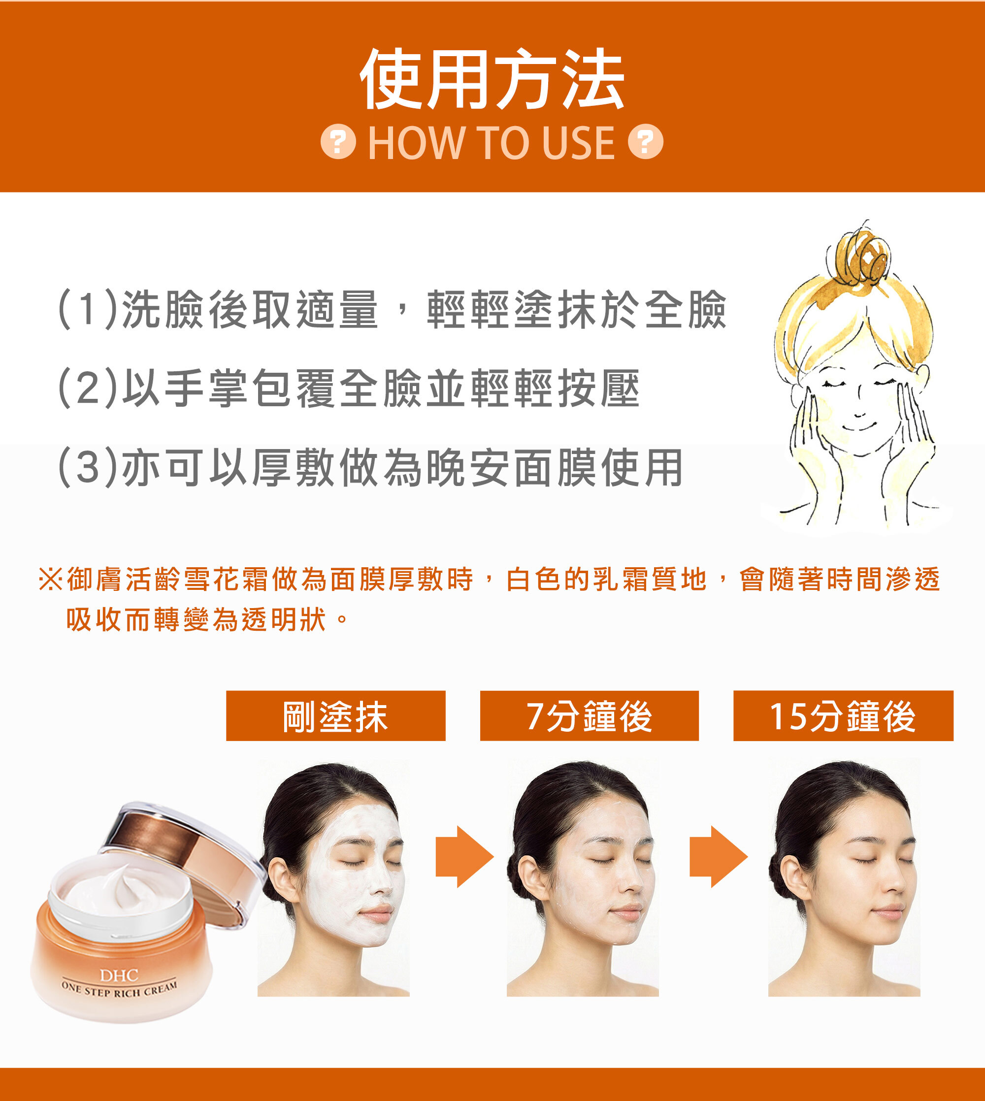 高CP值、多效合一,集結了化粧水、精華液、乳液、乳霜、面膜多種機能,洗臉後,只需御膚活齡雪花霜就能迅速完成所有保養程序。