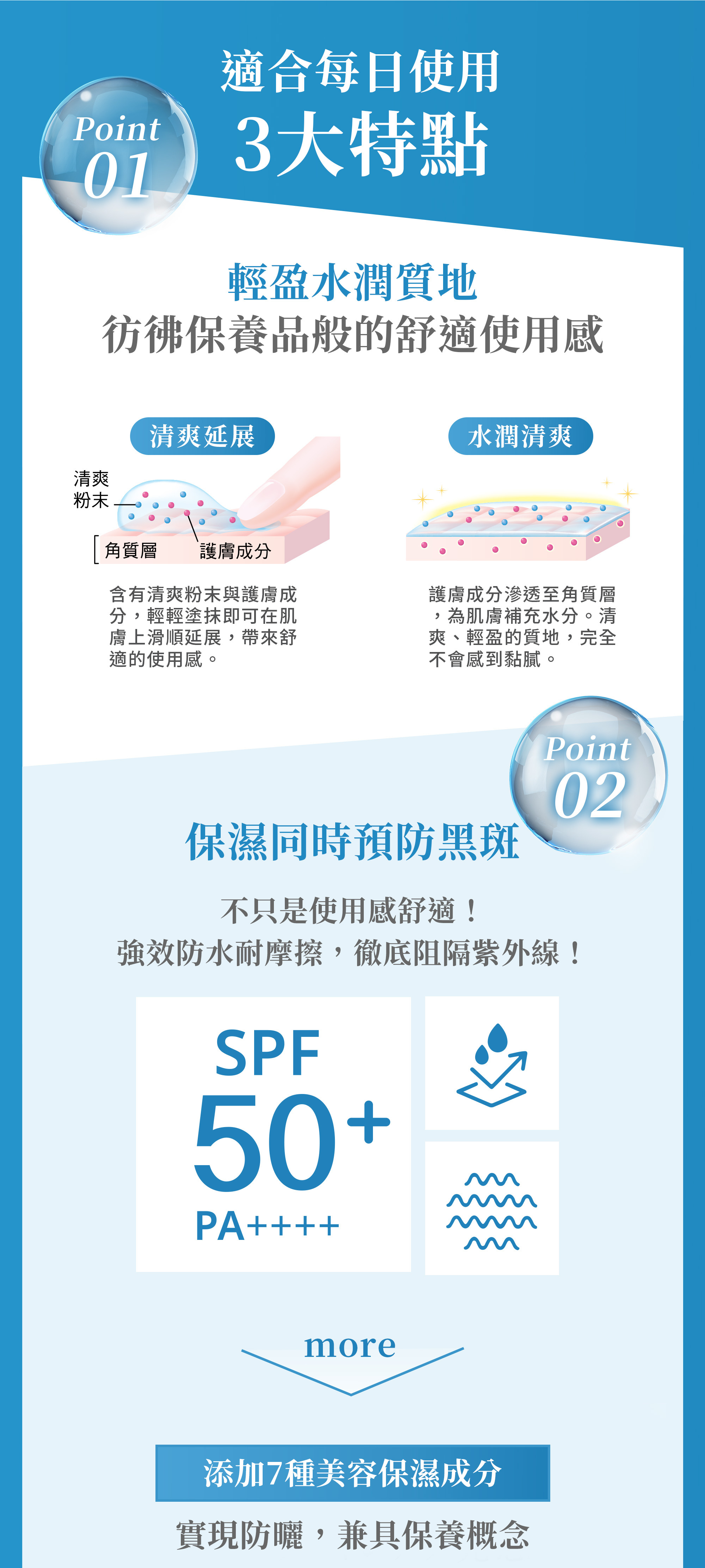 •清爽不黏膩,不泛白、不咬手,長效維持清爽膚觸。