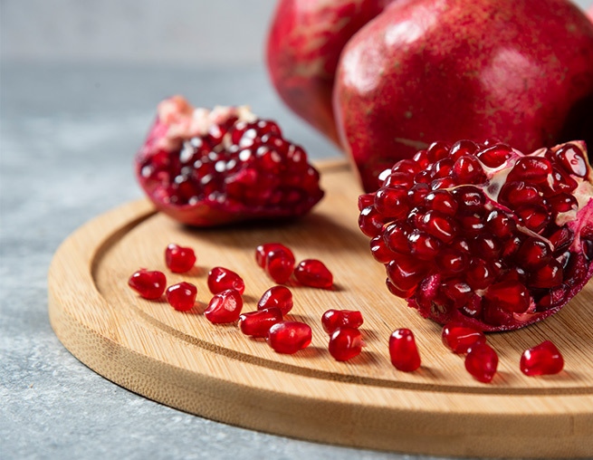 紅石榴以其豐富的營養成分,被譽為「水果中的紅寶石」。紅石榴富含抗氧化維生素 C、有機酸、黃酮類化合物、及石榴多酚等多酚類,可幫助調整體質,讓人由內而外透出好氣色。