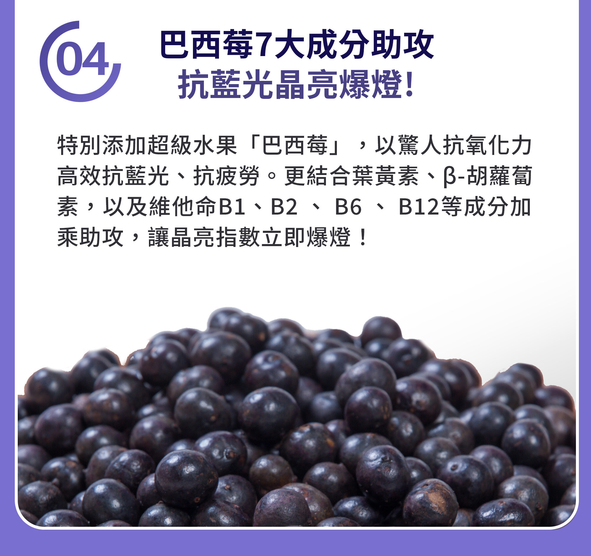 • 藍莓X巴西莓+6大營養素 ✦ 全方位守護舒適視力