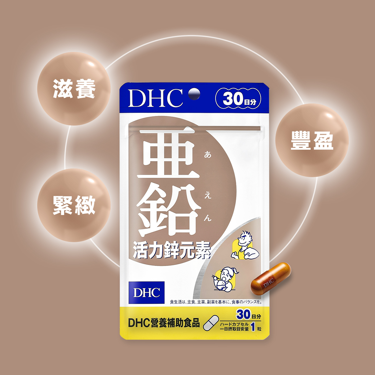 DHC活力鋅元素擁有豐富鋅含量,並搭配鉻、硒等礦物質,同時維持醣類、蛋白質、核酸正常代謝,體力及能量補充最完備,小錠劑設計,輕鬆一顆鋅錠,為生活帶來滿滿活力。
