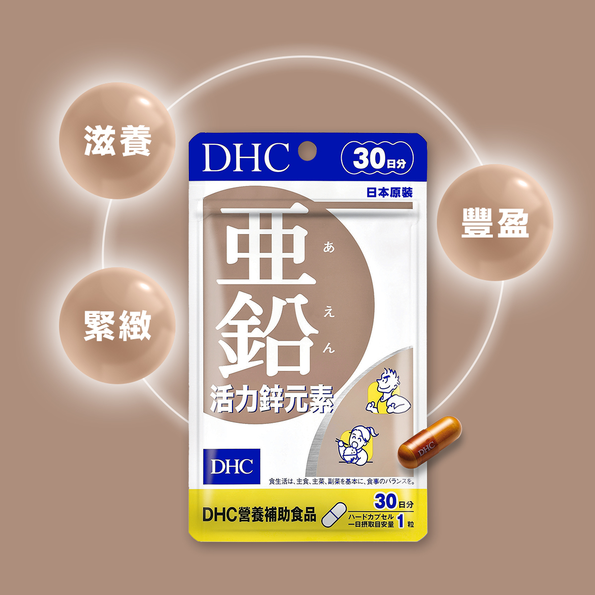 DHC活力鋅元素擁有豐富鋅含量,並搭配鉻、硒等礦物質,同時維持醣類、蛋白質、核酸正常代謝,體力及能量補充最完備,小錠劑設計,輕鬆一顆鋅錠,為生活帶來滿滿活力。